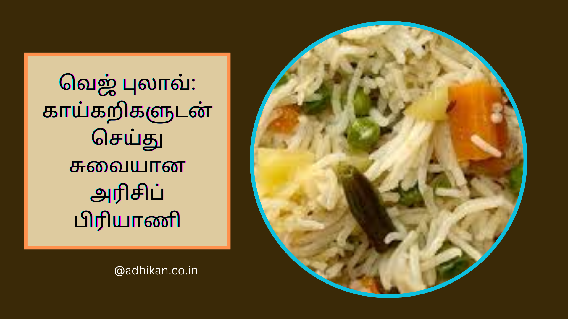வெஜ் புலாவ்: காய்கறிகளுடன் செய்து சுவையான அரிசிப் பிரியாணி. வெஜ் புலாவ் என்பது காய்கறிகளுடன் சேர்த்து சுவையாக சமைக்கப்படும் ஒருவகையான அரிசி உணவு. இது எளிமையான முறையில் செய்யப்படும் உணவாக இருக்கும், ஆனால் அதற்கு கிடைக்கும் சுவை மிகவும் அருமையாக இருக்கும். வெஜ் புலாவ் செய்வது எப்படி என்பதை இங்கே தெளிவாக விளக்குகிறேன்.